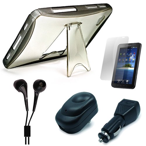 "Grey Trim Durable Protective Hard Crystal Case Cover with Newly Designed Kickstand for Samsung Galaxy Tab 7 inch LCD Display Screen Wifi 3G Samsung Galaxy Tablet P1000 + Anti Glare Clear Screen Protector + USB Car Charger + USB Travel Wall Charger + Hifi Noise Reducing Headphones / Earbuds" Overview